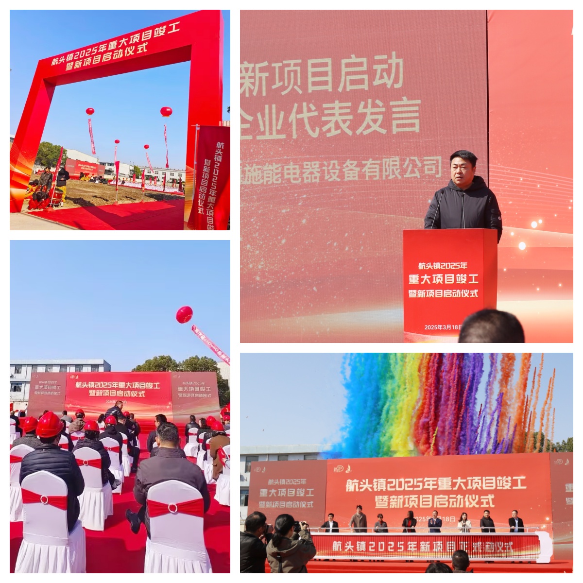 The atmosphere at the event was warm, and the red arch, fluttering balloons and neatly arrayed guests witnessed the important moment together. Lion dance performances, flag waving and other links ignited the atmosphere on the scene. Afterwards, the leaders and guests jointly took the stage to launch the new project, and the colorful smoke screen rose into the sky, marking the official start of the construction of the new plant of Shineng Electric. The ceremony brought together relevant government departments, corporate representatives and industry colleagues to look forward to the future development of the project.