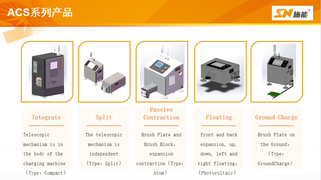 ● Charging station is integrated mechanism, fast and convenient installation (also split type; ACS has no telescopic telescopic mechanism)