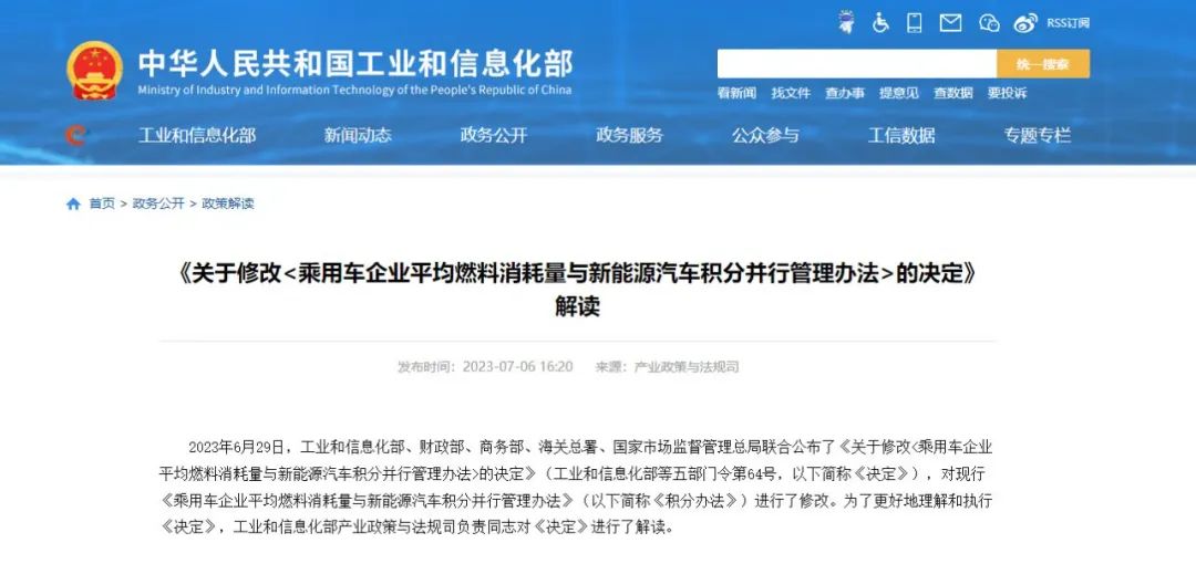 关于乘用车企业平均燃料消耗量与新能源汽车积分并行管理办法