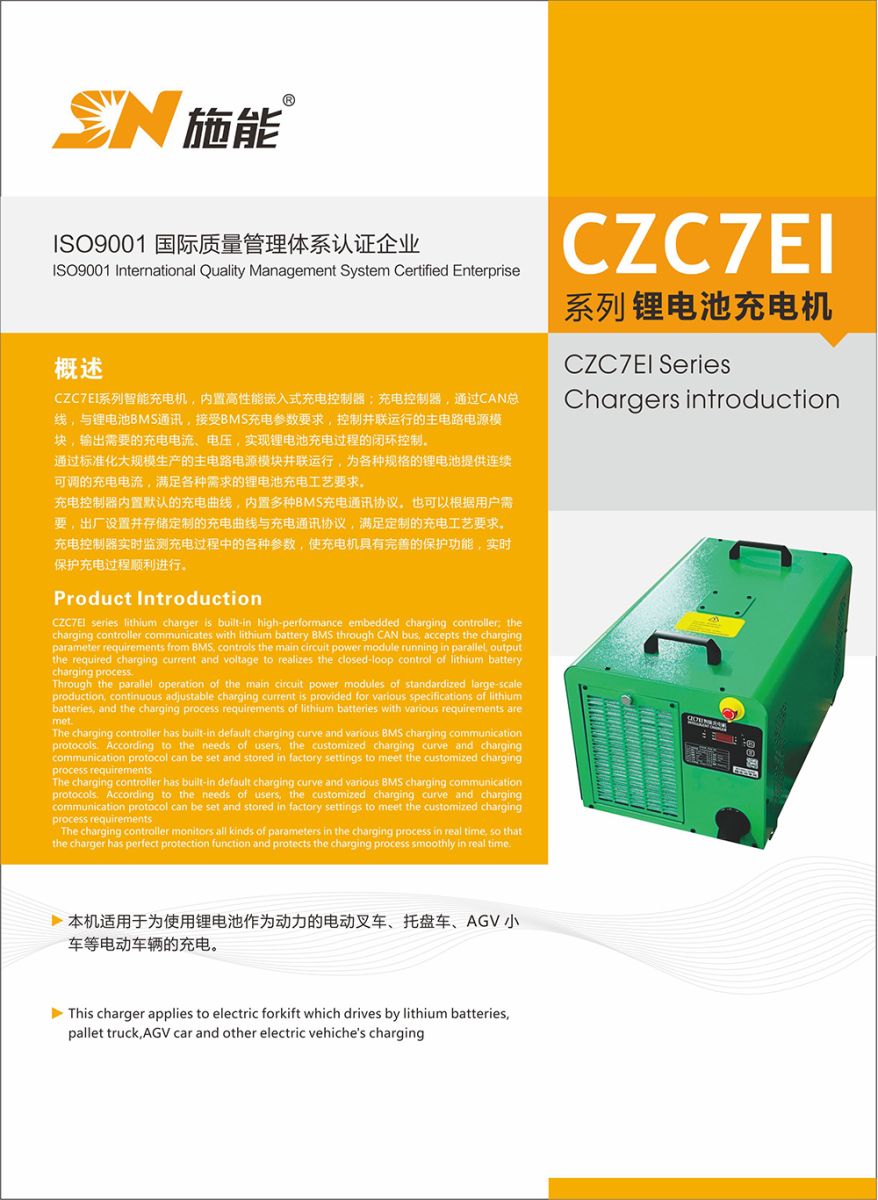 CZC7EI系列智能充电机,内置高性能嵌入式充电控制器;充电控制器,通过CAN总线,与锂电池BMS通讯,接受BMS充电参数要求,控制并联运行的主电路电源模块,输出需要的充电电流、电压,实现锂电池充电过程的闭环控制。