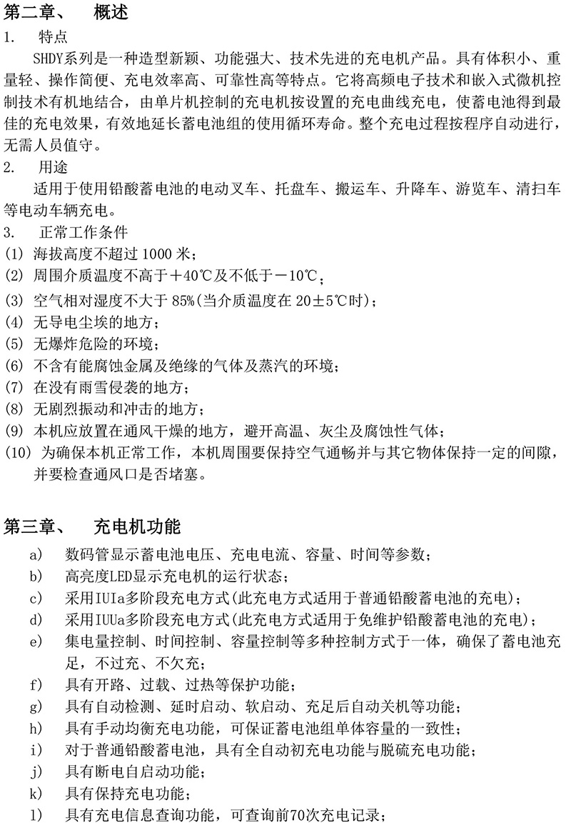 SHDY系列是一种造型新颖、功能强大、技术先进的充电机产品。具有体积小、重量轻、操作简便、充电效率高、可靠性高等特点。它将高频电子技术和嵌入式微机控制技术有机地结合,由单片机控制的充电机按设置的充电曲线充电,使蓄电池得到最佳的充电效果,有效地延长蓄电池组的使用循环寿命。整个充电过程按程序自动进行,无需人员值守。
